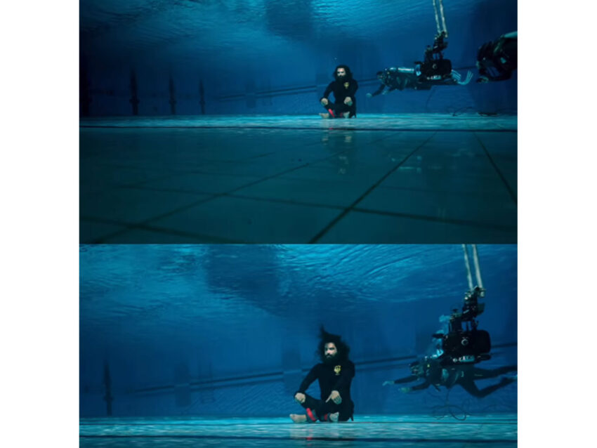 The footage, released by MG Lights N Cam and AQUACINEGEAR, offers a glimpse into the technically demanding underwater sequences that have become a talking point among audiences.