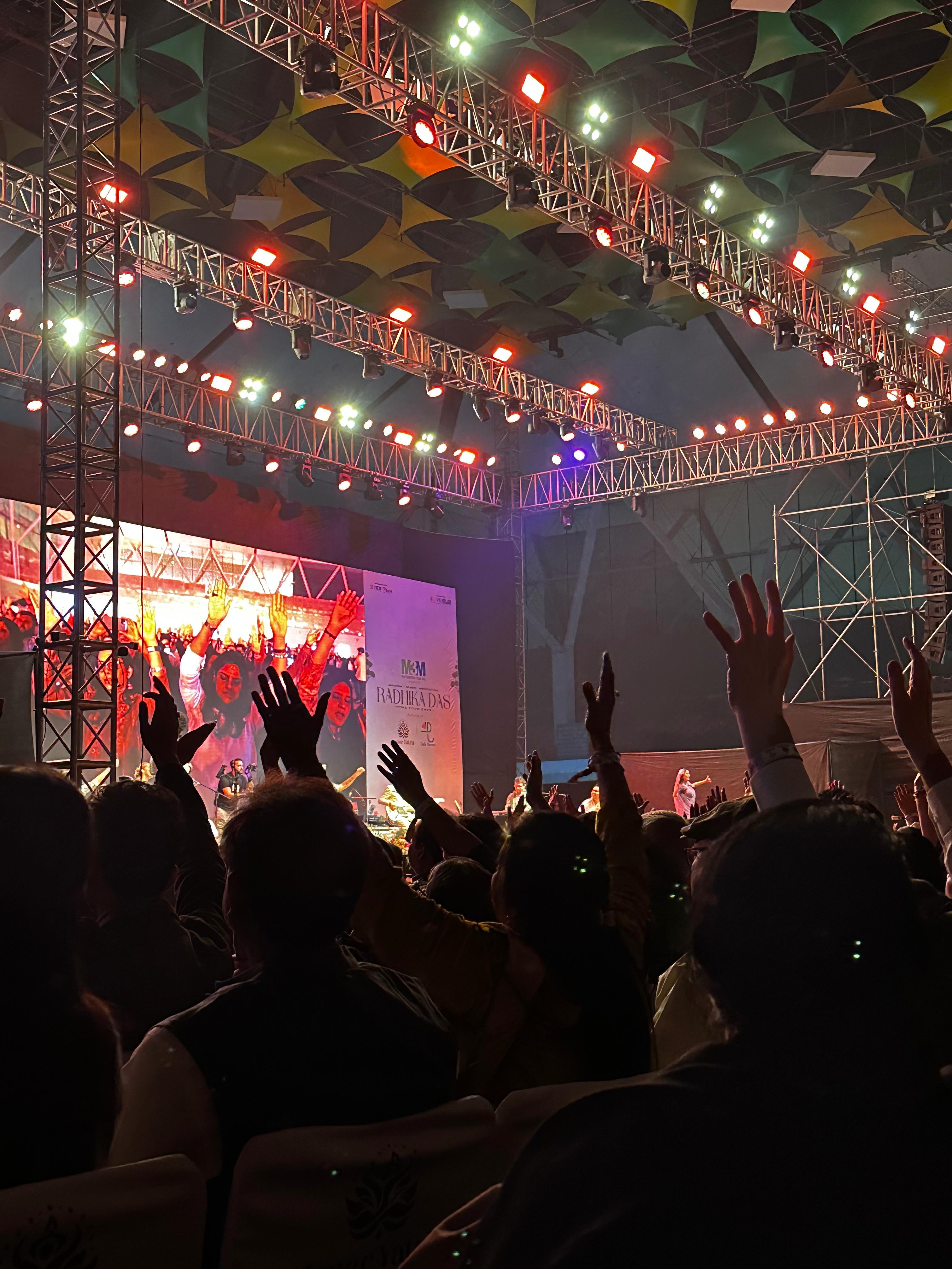 The venue was jam-packed, with the audience singing in chorus and dancing to the devotional tracks.