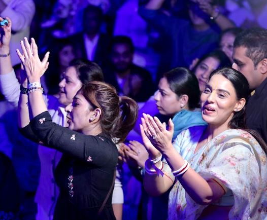 The venue was jam-packed, with the audience singing in chorus and dancing to the devotional tracks.
