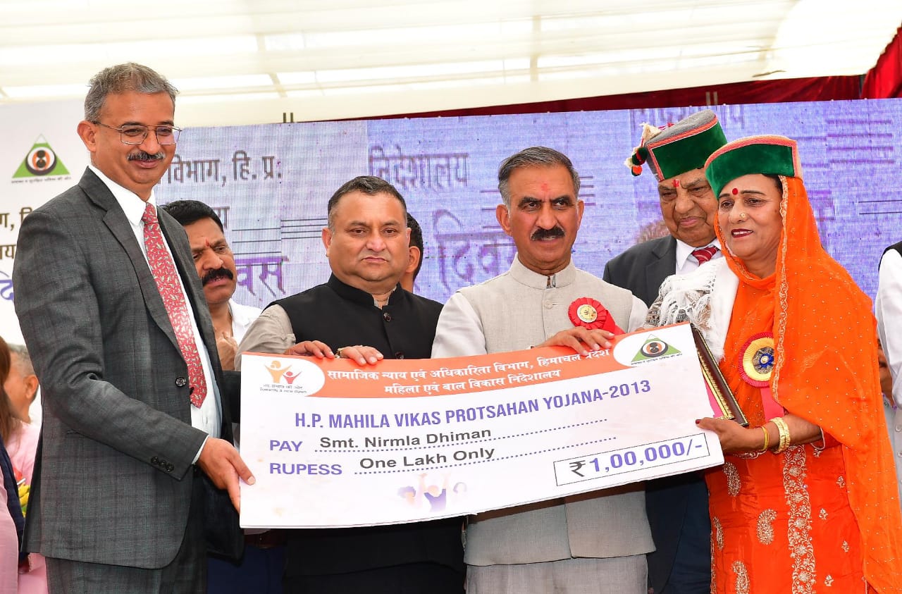 He said that under Indira Gandhi Sukh Shiksha Yojana, the state government was bearing the cost of higher education for the children of widowed women. He said that the entire administrative leadership of Lahaul-Spiti district was currently in the hands of women and that the Deputy Commissioners of Sirmaur and Hamirpur districts were also women officers.