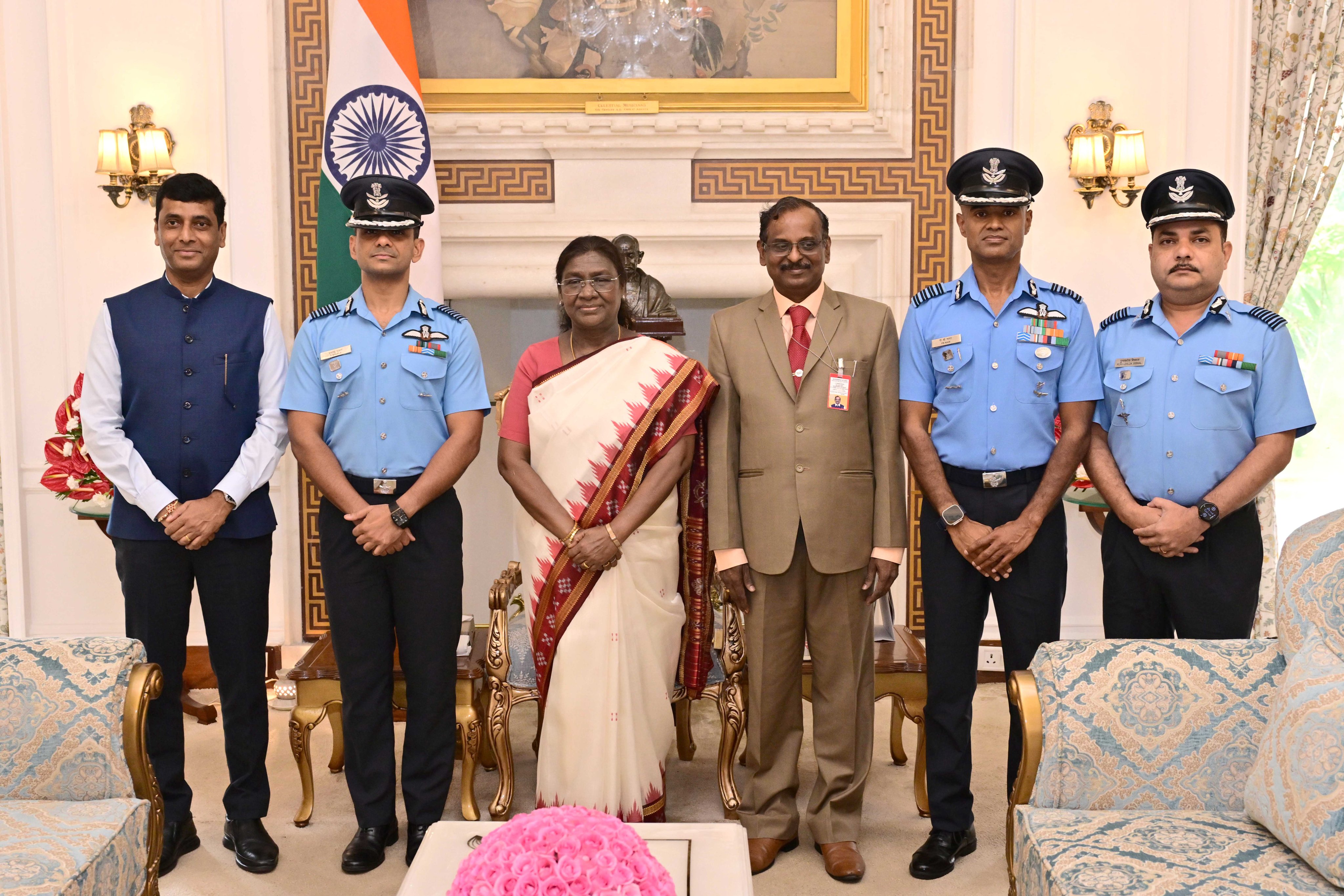 In a post on X, the President said, “Group Captain Shubhanshu Shukla, Group Captain Prasanth Balakrishnan Nair and Group Captain Punyashlok Biswal, along with Chairman, ISRO and Secretary, Department of Space, Dr V Narayanan and Director, Human Space Flight Centre, Shri Dinesh Kumar Singh, called on President Droupadi Murmu at Rashtrapati Bhavan. Group Captain Shubhanshu Shukla shared his experiences in space with the President. The President extended her best wishes to the entire team for future endeavours, especially for the Gaganyaan Mission.”