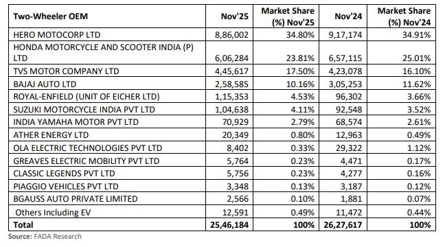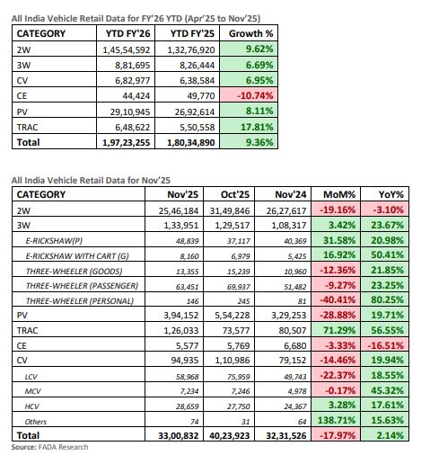 FADA President C S Vigneshwar said, “November’25 defied the conventional post-festive slowdown, delivering a resilient performance despite an unusually high comparative base.”
