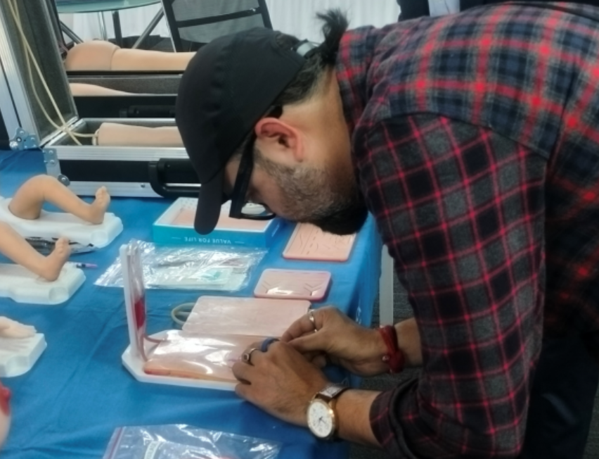 The Anatomage Table is a marvel of medical engineering, offering a fully 3D, life-size digital dissection experience that feels like something out of a sci-fi film. Seeing it alongside Lusi, their specialised infant lung simulator, really highlights how advanced simulation has become. I even tried my hand at their multi-spot pricking station to see if I could take a blood sample perfectly, and I did that, but let’s just say it’s a lot harder than the pros make it look, so yes, the feedback from the simulator is invaluable for training.