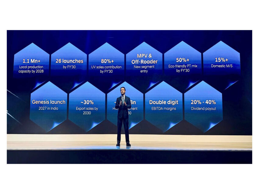 Hyundai targets over 15 per cent domestic market share by FY2030, with utility vehicles (UVs) expected to account for over 80 per cent of its sales. Eco-friendly powertrains comprising CNG, hybrid, and electric models are projected to contribute more than 50 per cent to its portfolio by the end of the decade.