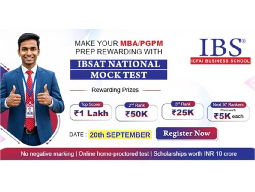Hyderabad (Telangana) [India], September 11: ICFAI Business School (IBS) is conducting the IBSAT National Mock Test (NMT) 2025, a practice exam designed on the same pattern as the IBSAT final test scheduled for December 27 and 28, 2025. Open to all MBA aspirants, including those who have not applied for IBSAT, the NMT offers a chance to check preparedness while competing for 100 prizes worth a total of ₹10 lakh — including ₹1,00,000 for the first prize, ₹50,000 for the second, and ₹25,000 for the third.