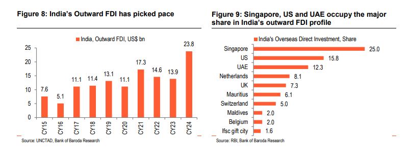 “In terms of destination country for outward FDI of India, it is more diversified than majority of other countries. Hence it doesn’t pose much immediate risk under the volatile global policy space,” the report read.