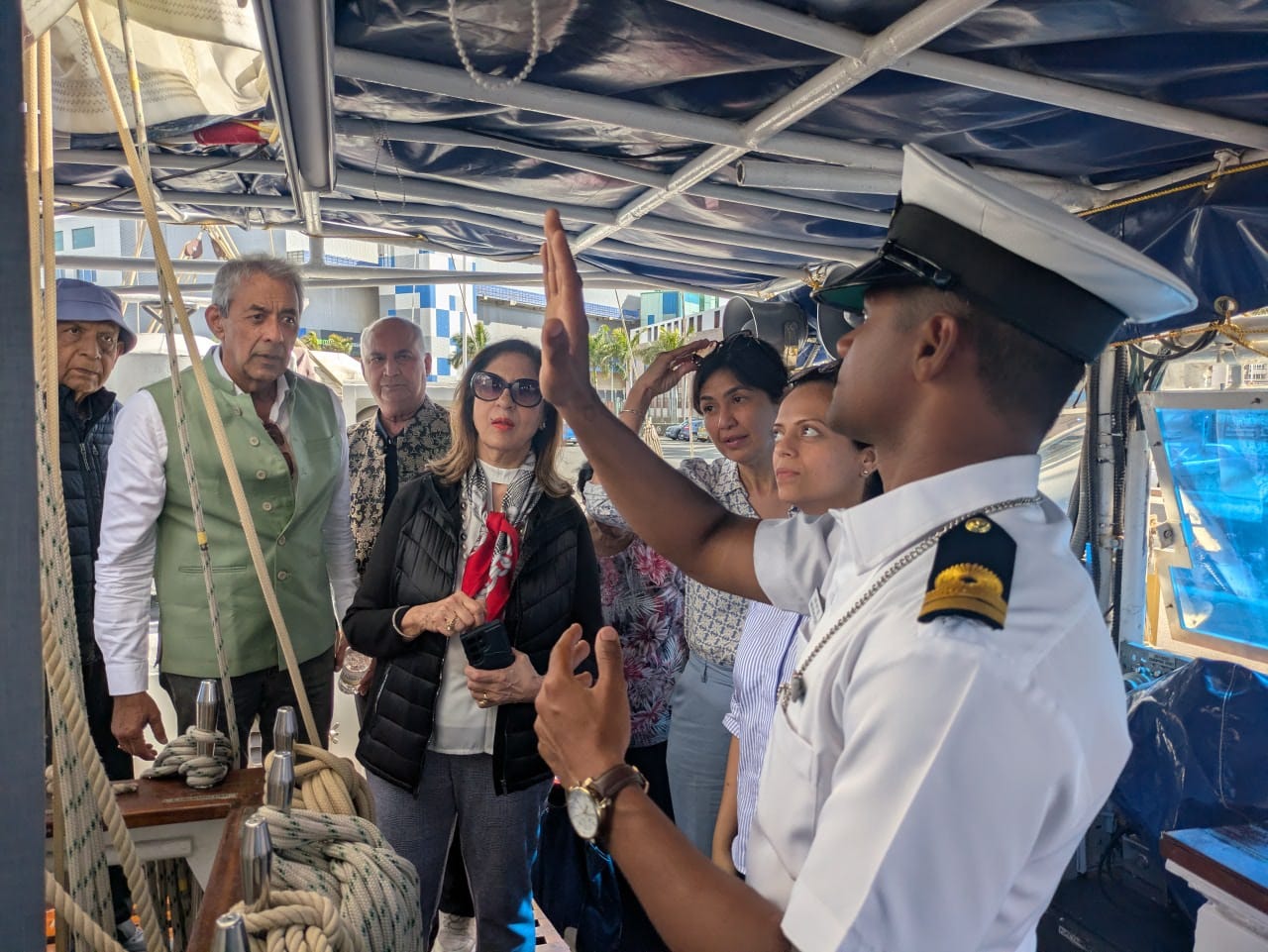 During the port call, the ship was open to the public and drew a large number of visitors from the local community and the Indian diaspora. Showcasing India’s seafaring legacy, the vessel hosted guided tours where personnel shared invaluable experiences of ocean sailing, fostering bonds of friendship across the seas.