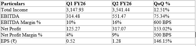 Hyderabad (Telangana) [India], October 13: Intense Technologies Limited (NSE: INTENTECH | BSE: 532326), a globally operating platform-led services company delivering mission-critical solutions in customer communications, data management, and process automation, today announced its audited Q2 FY26 results, highlighting its continued impact across the BFSI, Telecom, and Government sectors.