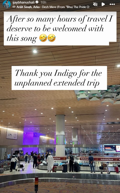 Having waited hours before taking his flight to Mumbai, Jay took a subtle dig at the airline and wrote, “After so many hours of travel, I deserve to be welcomed with this song ‘Desh Mere’. Thank you Indigo for the unplanned extended trip.”