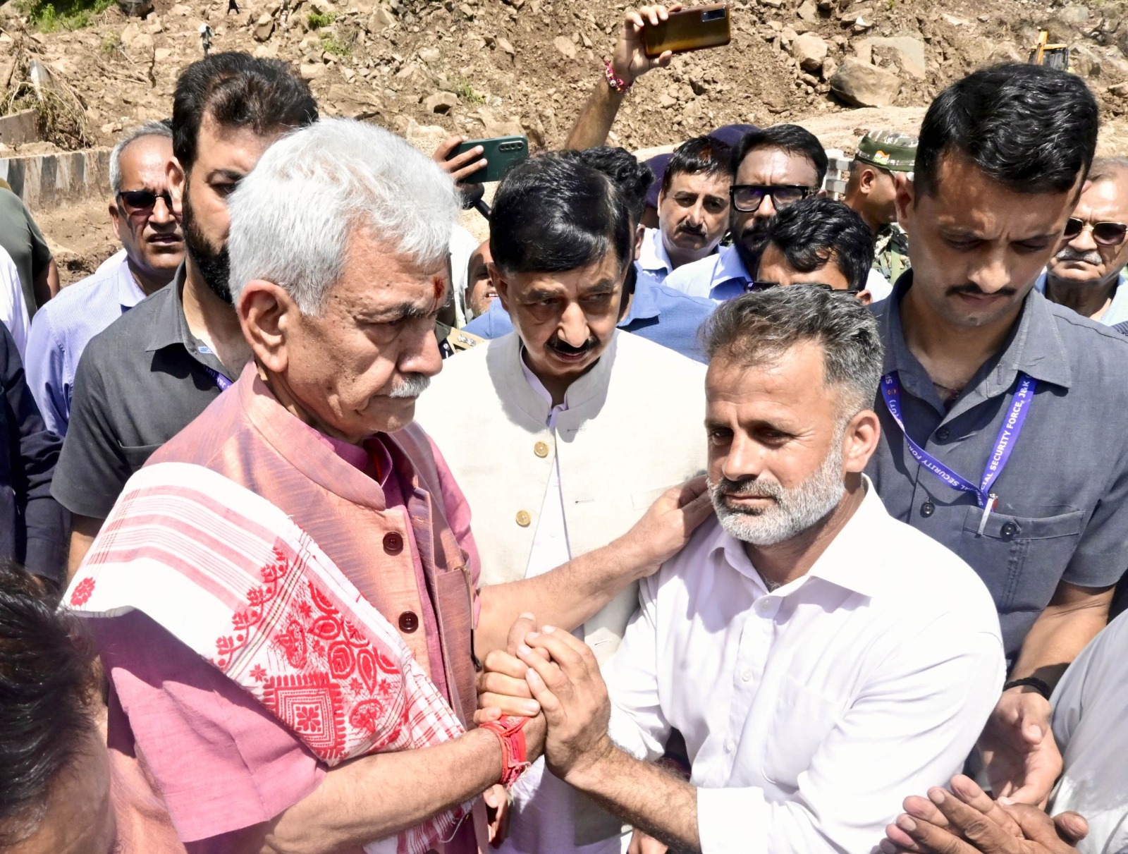 The Lieutenant Governor was briefed by RS Yadav, NHAI Regional Officer, Jammu and Kashmir, on the deployment of men and machinery for the speedy restoration of the National Highway. It was informed that the team is working around the clock, and one lane will be open to traffic soon.
