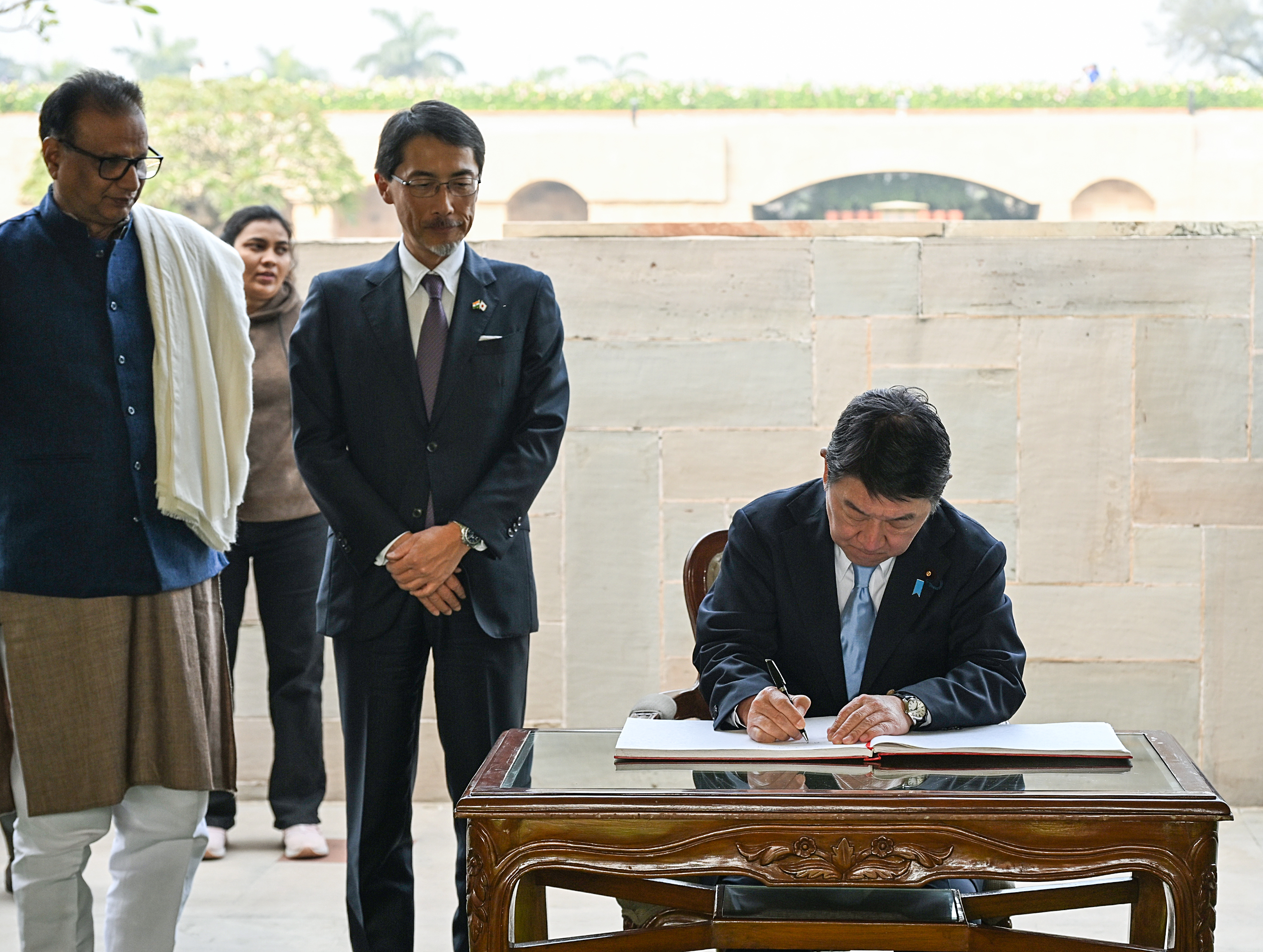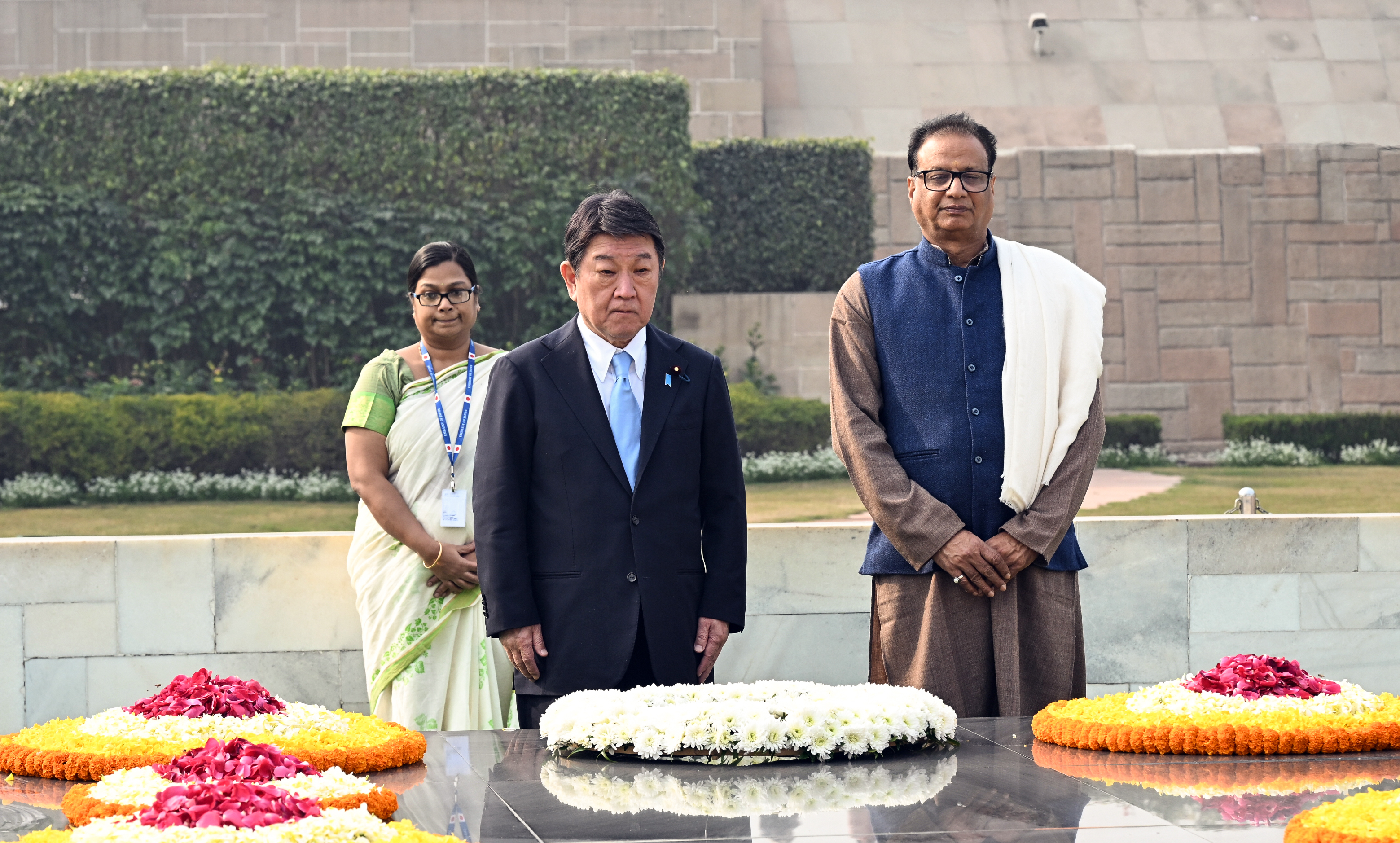 New Delhi [India], January 18 (ANI): Japanese Foreign Minister Toshimitsu Motegi, who was on a three-day visit to India on Saturday, visited Raj Ghat and offered tributes to the Father of the Nation, Mahatma Gandhi