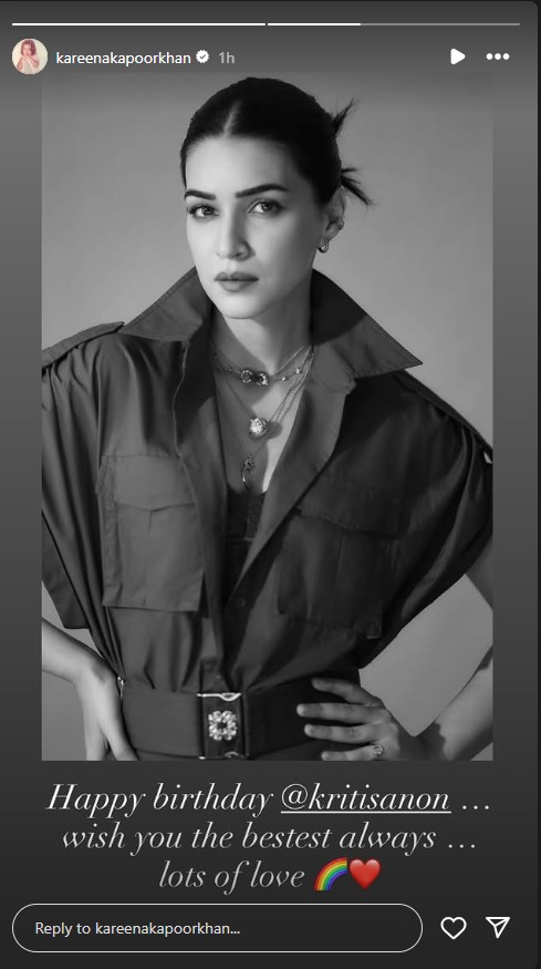 Taking to her Instagram stories, she shared a stunning picture of Kriti and wrote, “Happy birthday @kritisanon … wish you the bestest always, lots of love.”