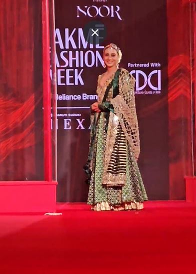 The actress ensemble featured intricate embroidery, shimmering zari details and hard work, which Tabu flaunted throughout her walk.