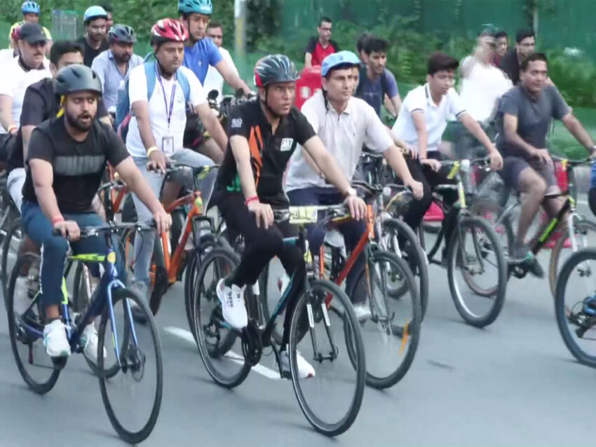 The ‘Fit India Sundays on Cycle’ is organised by the Ministry of Youth Affairs and Sports (MYAS), in collaboration with the Cycling Federation of India (CFI), Yogasana Bharat and MY Bharat. The cycling drive is organised simultaneously in the capitals of all States and Union Territories, besides SAI Regional Centres, National Centres of Excellence (NCOEs), SAI Training Centres (STCs), Khelo India State Centres of Excellence (KISCEs) and Khelo India centres (KICs) across various age groups. (ANI)
