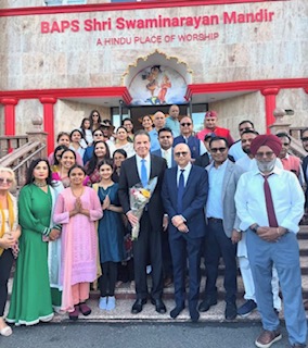 Mayoral Candidate, former NY Governor, Andrew Cuomo, and his team of supporters visited the BAPS Flushing Swaminarayan Mandir, Sunday, August 24, 2025, in an outreach event to meet the Indian community.