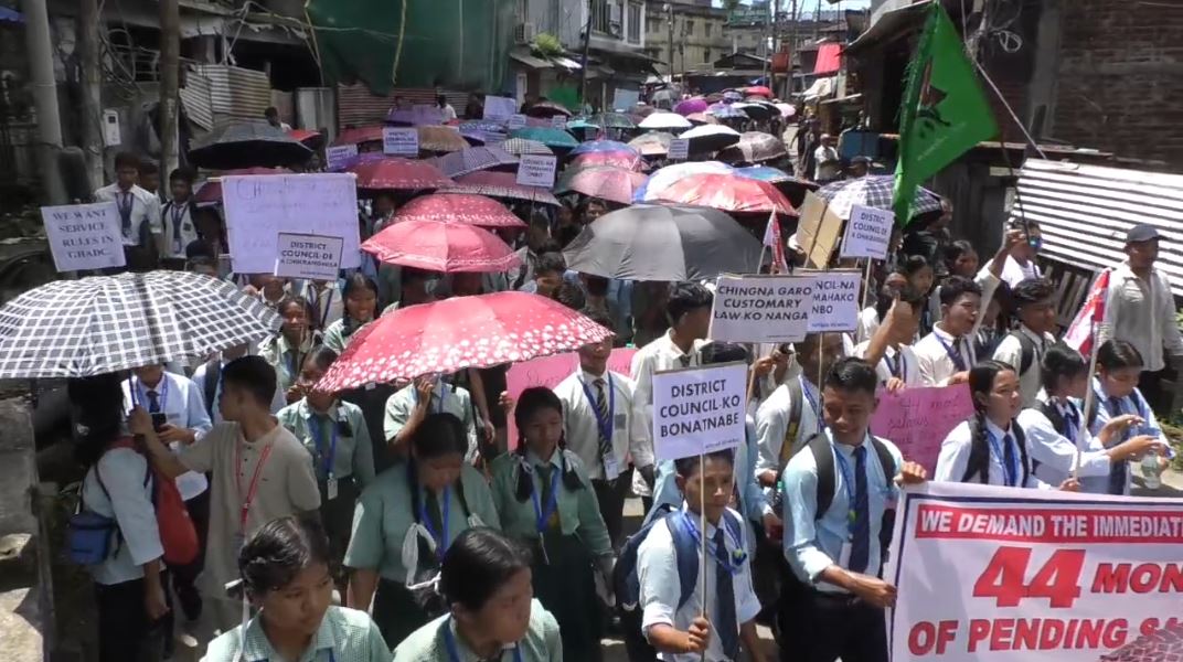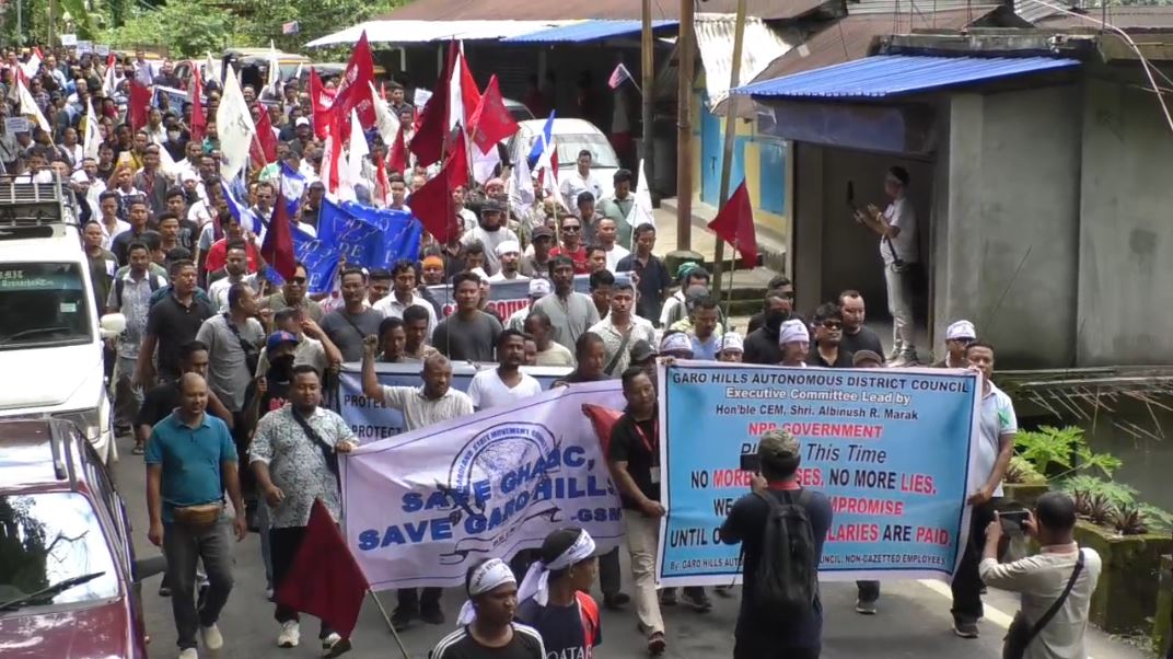 A conglomerate of organizations, including the Garo Students Union and several social outfits, marched alongside hundreds of salary-deprived staff of the district council as they made their way through the main thoroughfares of Tura town on Thursday.