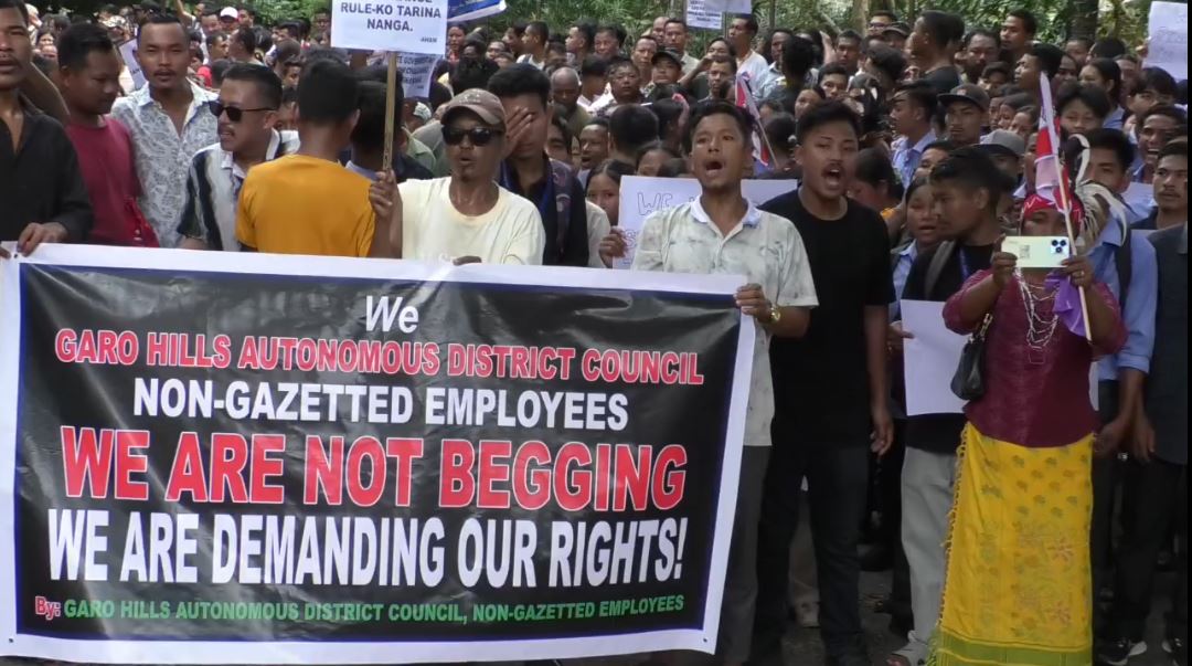 The Employees of GHADC have reached a mark of 44 months in unpaid dues. Days earlier, the Executive Committee of the GHADC, headed by Chief Executive Member (CEM) Albinush Marak, reportedly assured the striking employees of 5 months ‘ salary, followed by regular monthly salaries from the first week of November, to get them to return to work.
