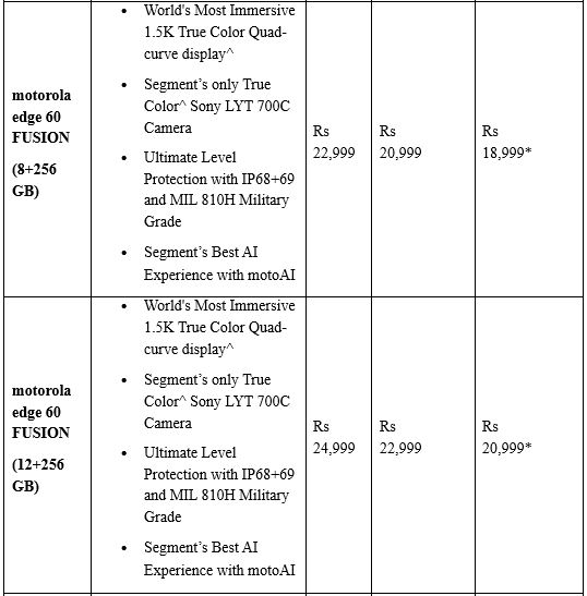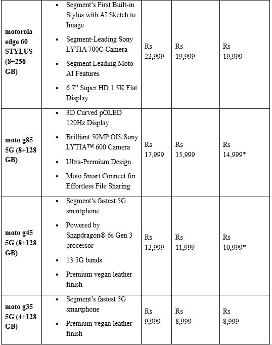 Starting with the biggest deal of the season, the motorola edge 60 PRO (8+256GB variant) which retails at Rs 29,999 can now be purchased at a festive effective price of just Rs 24,999*, making it the most disruptive flagship under Rs 25K.