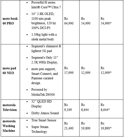 Motorola is also offering attractive deals on its smart QLED TVs starting at Rs 8,644* and smart washing machines starting at Rs 19,890*, bringing AI-powered innovation to every part of the connected home.