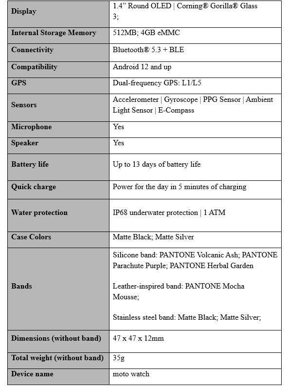 With up to 13 days of battery life, 7 days with always-on display and the ability to deliver a full day’s power in just 5 minutes of charging, the moto watch ensures uninterrupted performance. It also features a 1.4″ circular OLED display, over 24 always-on display designs, and IP68 + 1ATM water resistance, making it suitable for both active and everyday lifestyles.