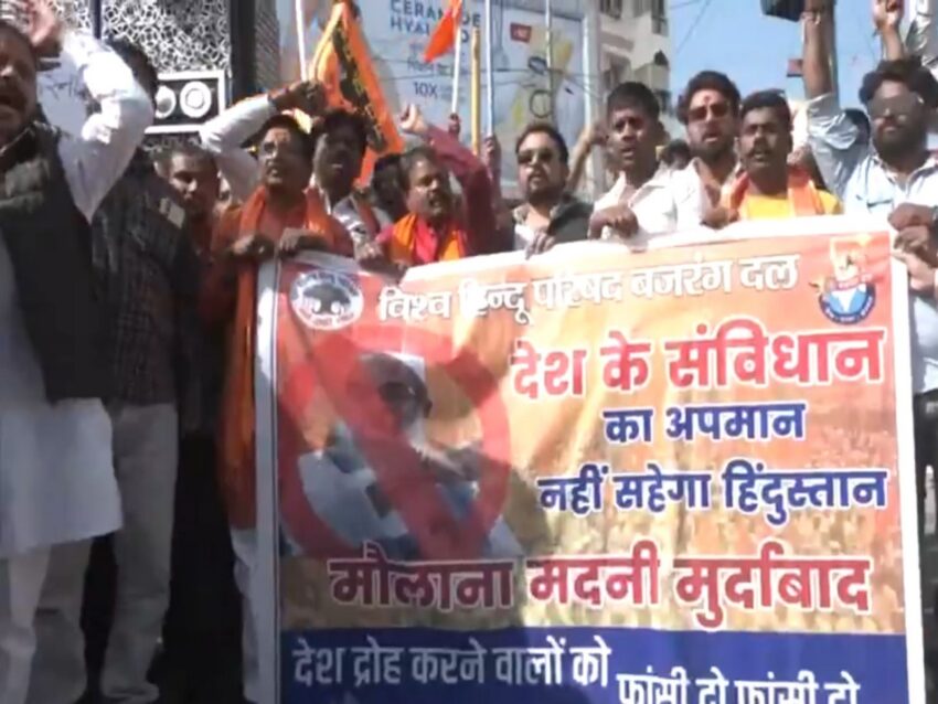 Bhopal (Madhya Pradesh) [India], November 30 (ANI): Workers of the Bajrang Dal and Vishva Hindu Parishad (VHP) on Sunday staged a protest in Bhopal against the recent statement made by Jamiat Ulama-i-Hind president Maulana Mahmood Madani.
