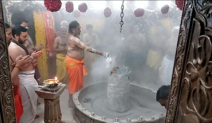 According to temple traditions, the ritual begins with the opening of the doors of Mahakal temple in the early hours, followed by a holy bath with Panchamrit, a sacred mixture of milk, curd, ghee, sugar, and honey. The deity is then adorned with cannabis and sandalwood before the unique Bhasma Aarti and dhoop-deep Aarti take place, accompanied by the rhythmic beats of drums and the resonating sound of conch shells.