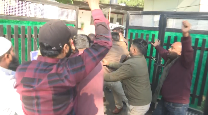 Additionally, the protestors tried to enter the Minister’s residence through the gate, but the police on the scene moved into action and pushed them aside.