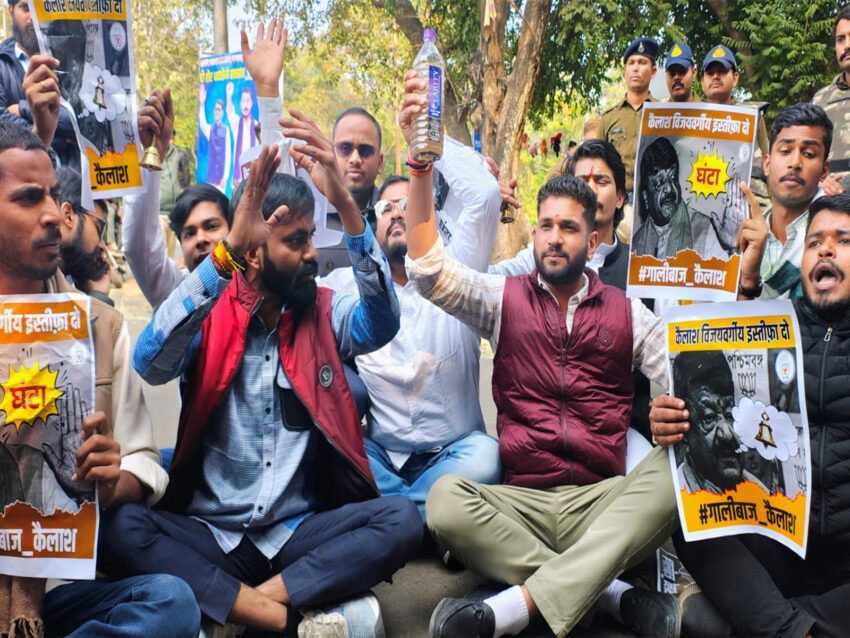 The protesters said that the minister used inappropriate and insensitive language while responding to questions from journalists on public health issues after several people died in Indore, and demanded his resignation.