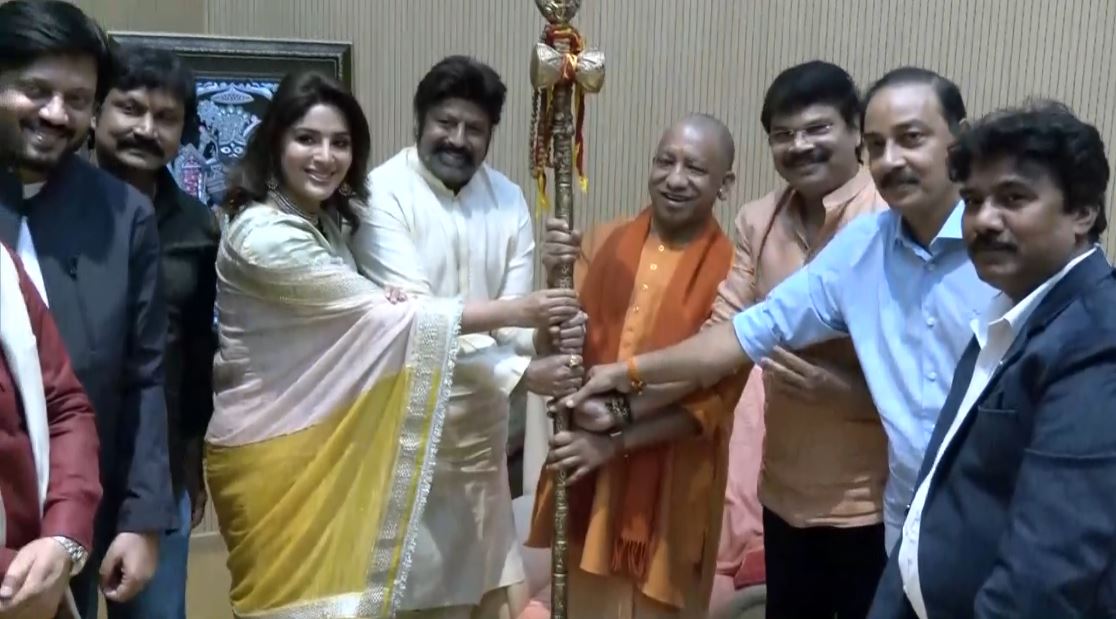During the meeting at Yogi Adityanath’s residence in Lucknow, Nandamuri Balakrishna posed with the UP Chief Minister with a holy trident, the weapon used by the actor in his upcoming film ‘Akhanda 2’.