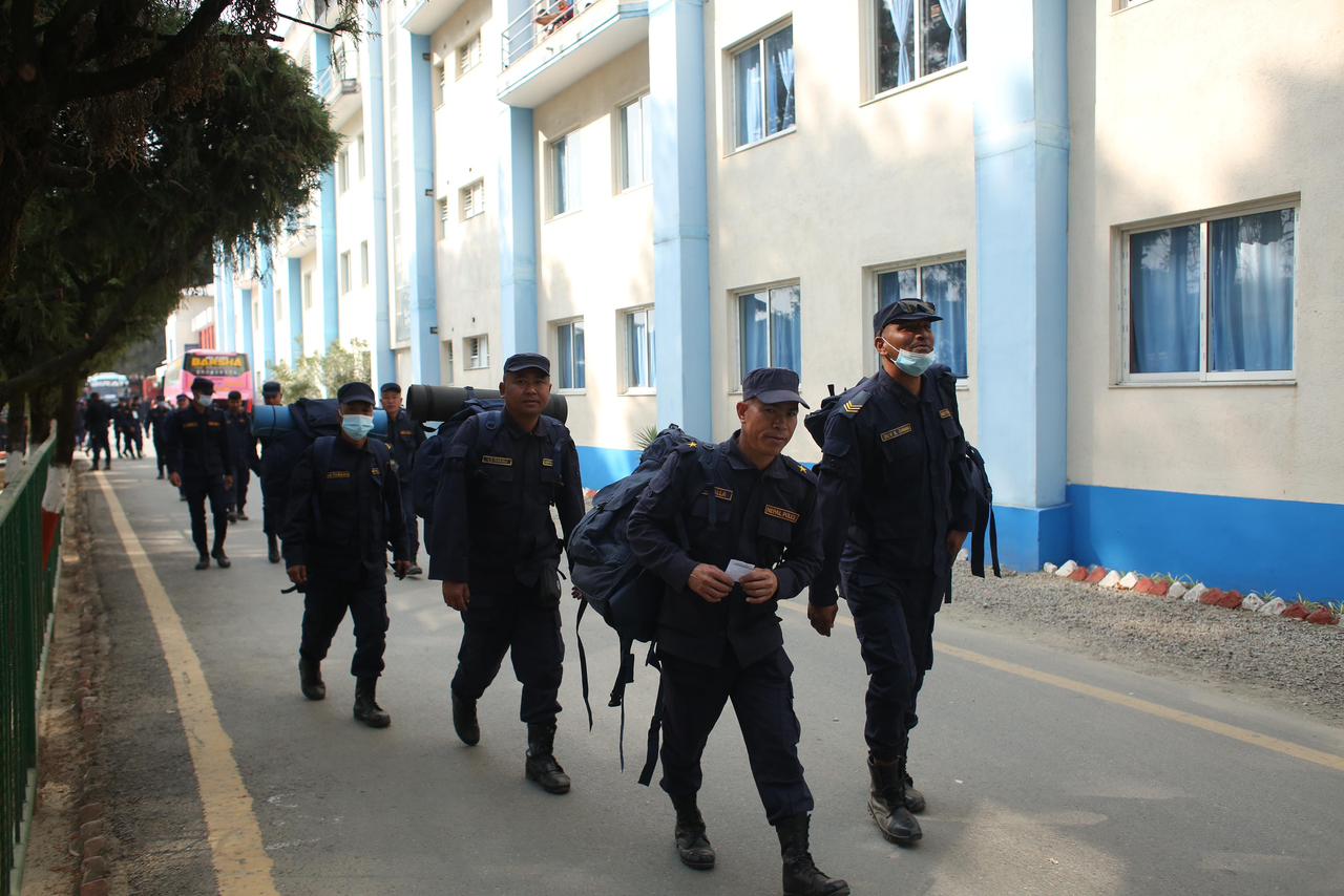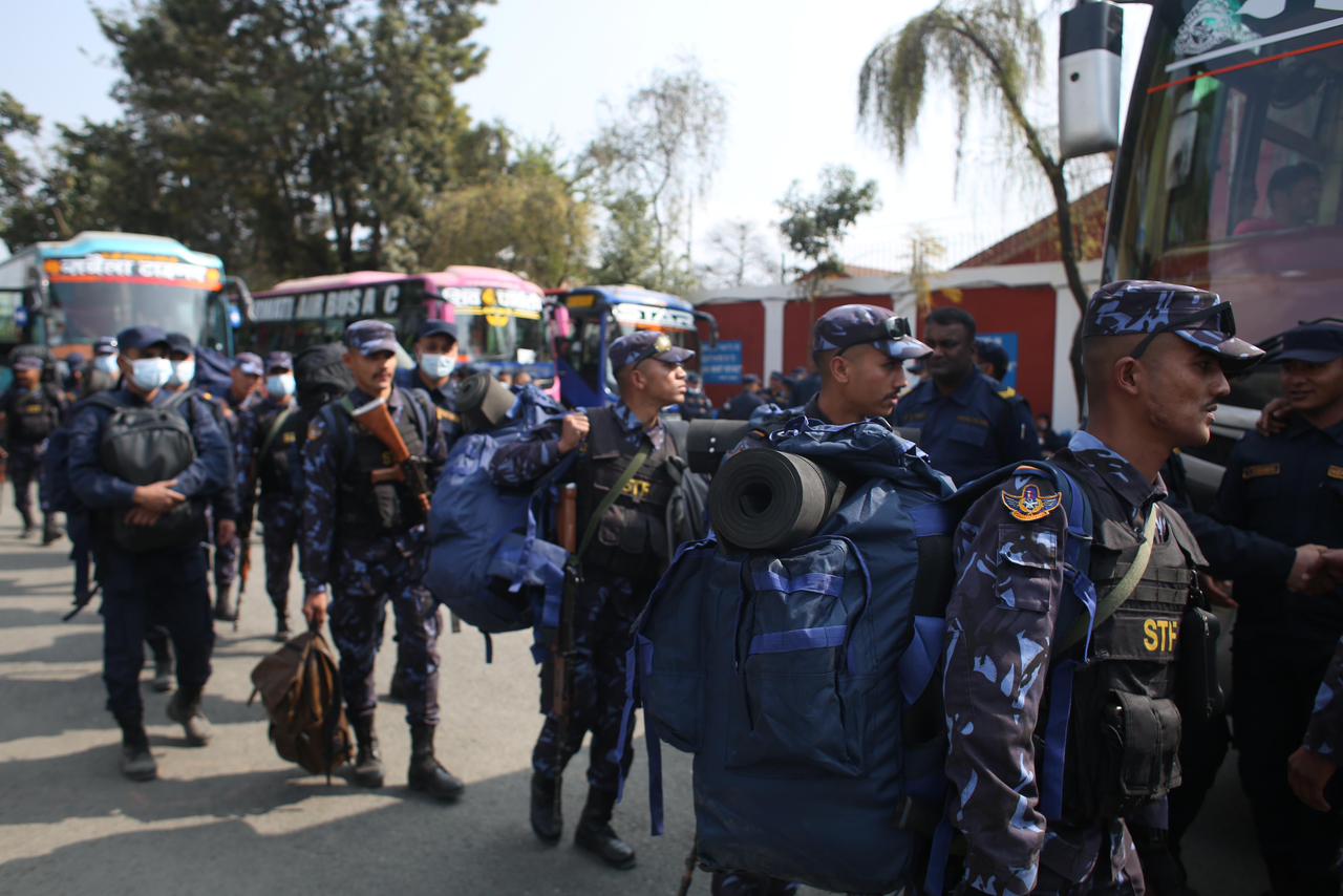 At the Nepal Police Academy in Kathmandu, over three thousand police personnel boarded buses as they started off for assigned districts to maintain security for the March 5 election.