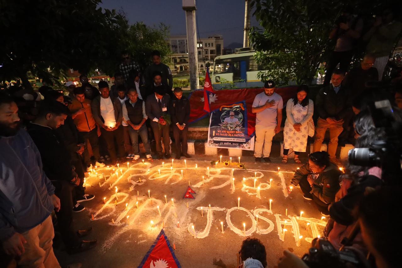 Dozens of youths gathered at the Maitighar Mandala in Kathmandu to pay tribute to Joshi, who had been in Israel under the “Learn and Earn” scheme and was abducted by the militant group on October 7, 2023.
