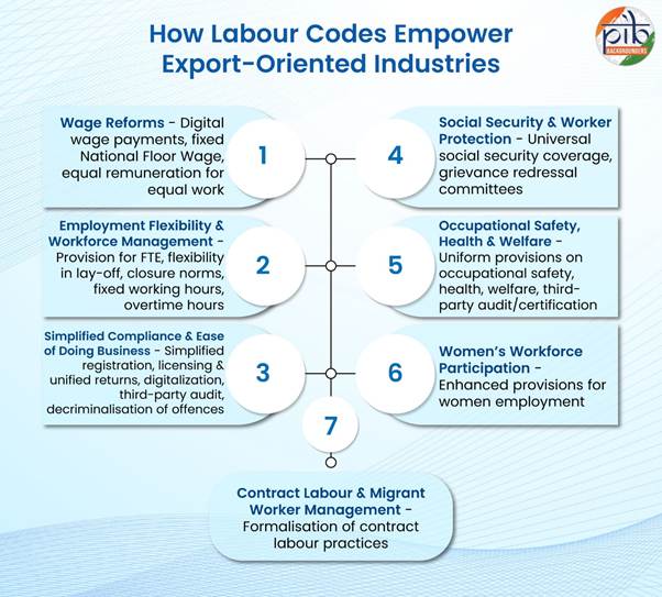 The labour reform brings about a series of benefits for India’s export sector, especially simplifying compliance for employers and enabling improved workforce management, according to a statement from PIB Headquarters on Sunday.