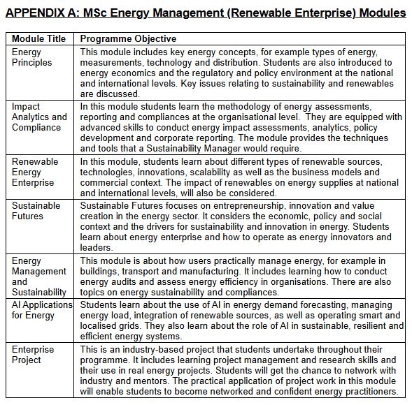 In short, the programme equips students with the technical, managerial and entrepreneurial skills essential for a career in energy, renewable technology and sustainability.