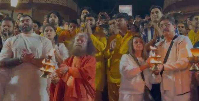 The family performed a peace prayer to honour the late Pankaj Dheer and also met Parmarth Niketan’s head, Swami Chidanand Saraswati, before witnessing a Ganga Aarti.