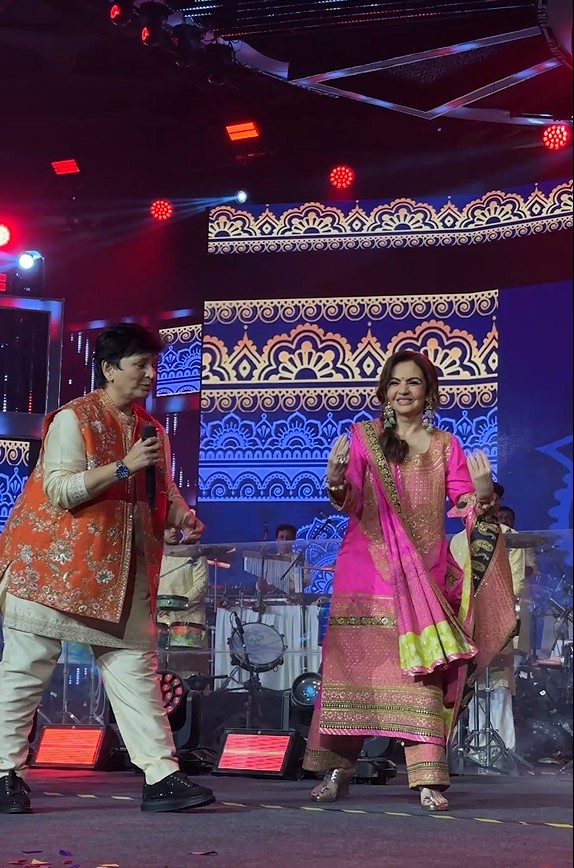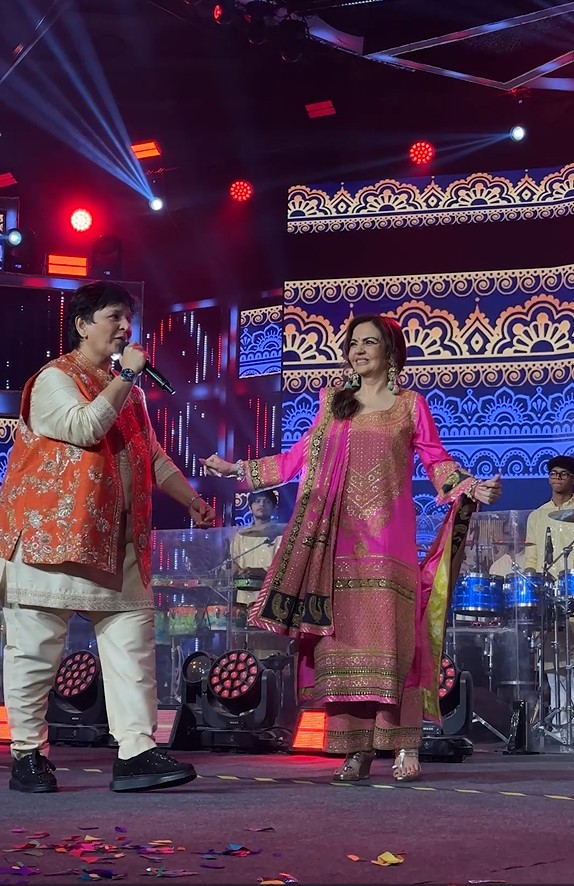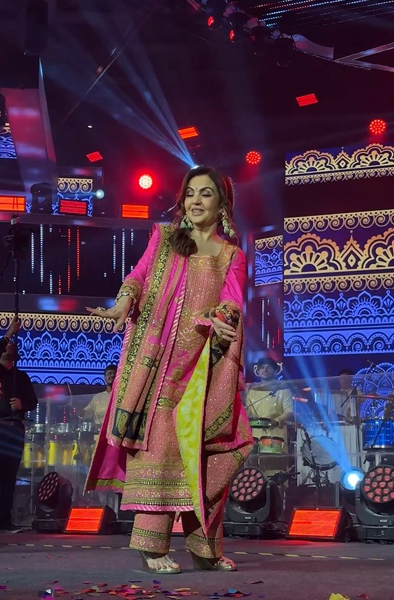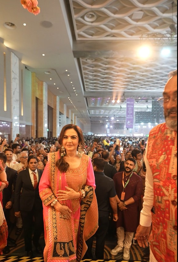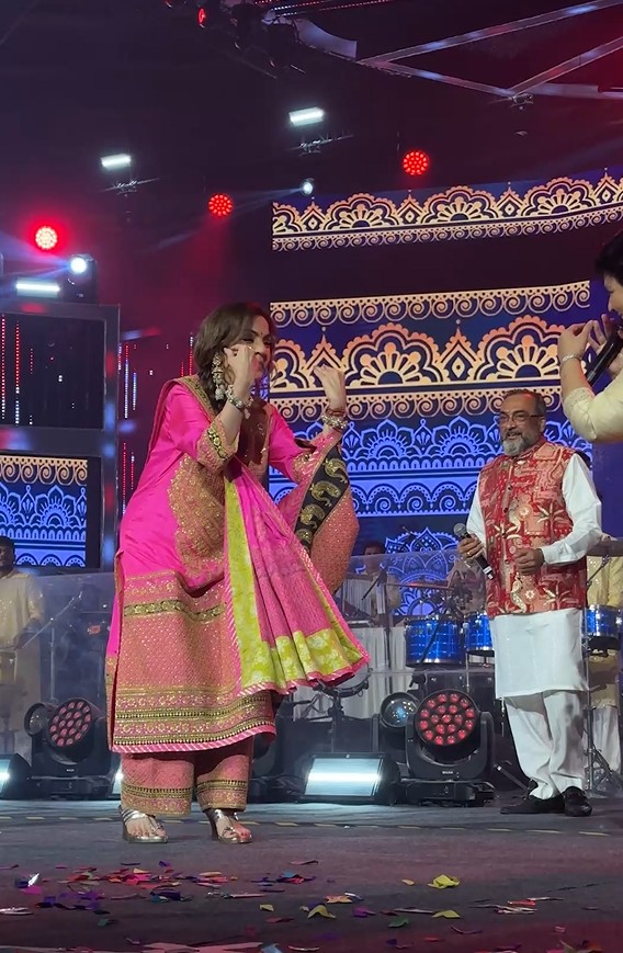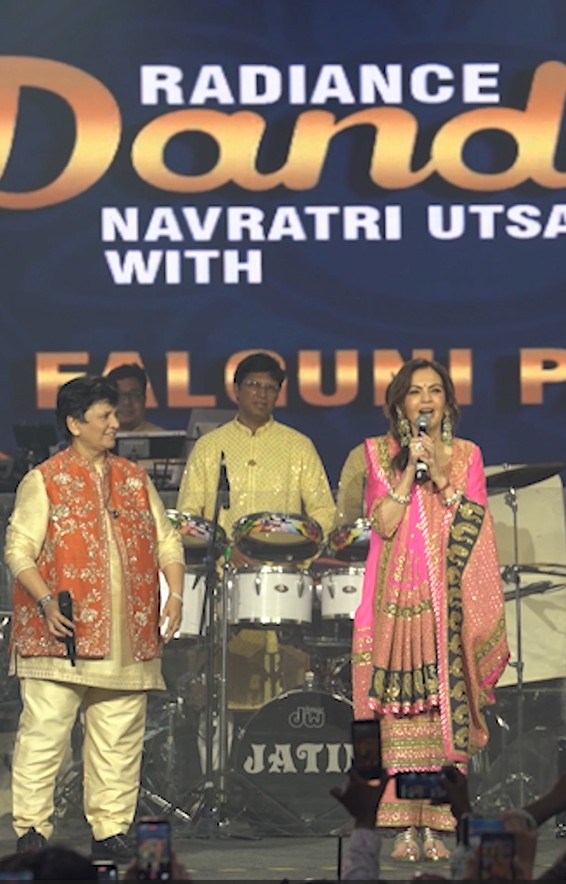 Nita Ambani addressed the crowd and said, “..When I was a young girl, I used to dance all nine nights of Navratri. It brings back so many beautiful, youthful memories. I have known Falguni (Pathak) for 25 years….”