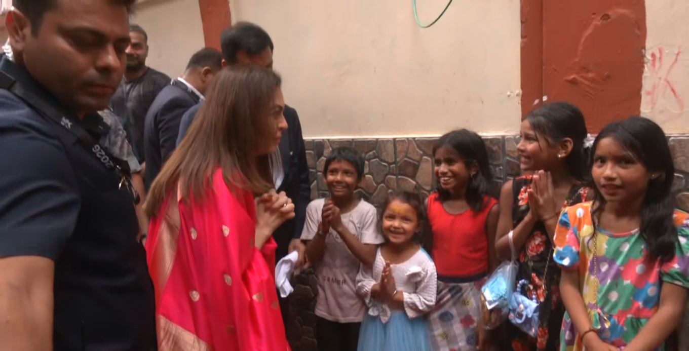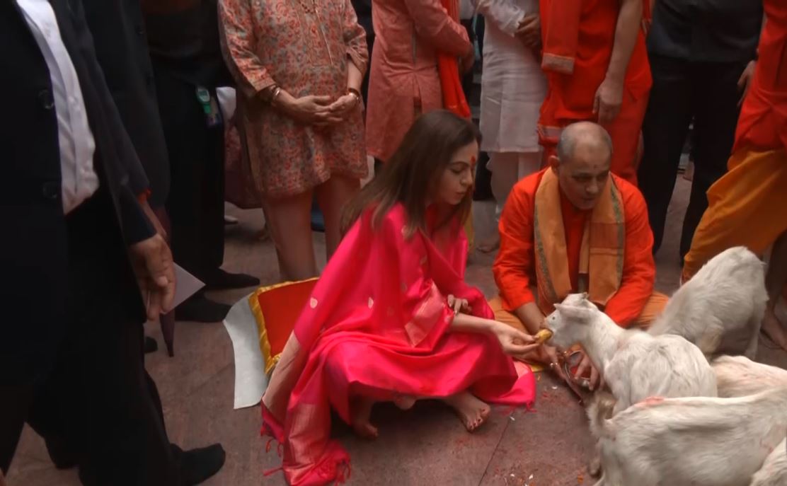 The founder of Reliance Foundation also interacted with the kids and fed the goats during her holy visit.