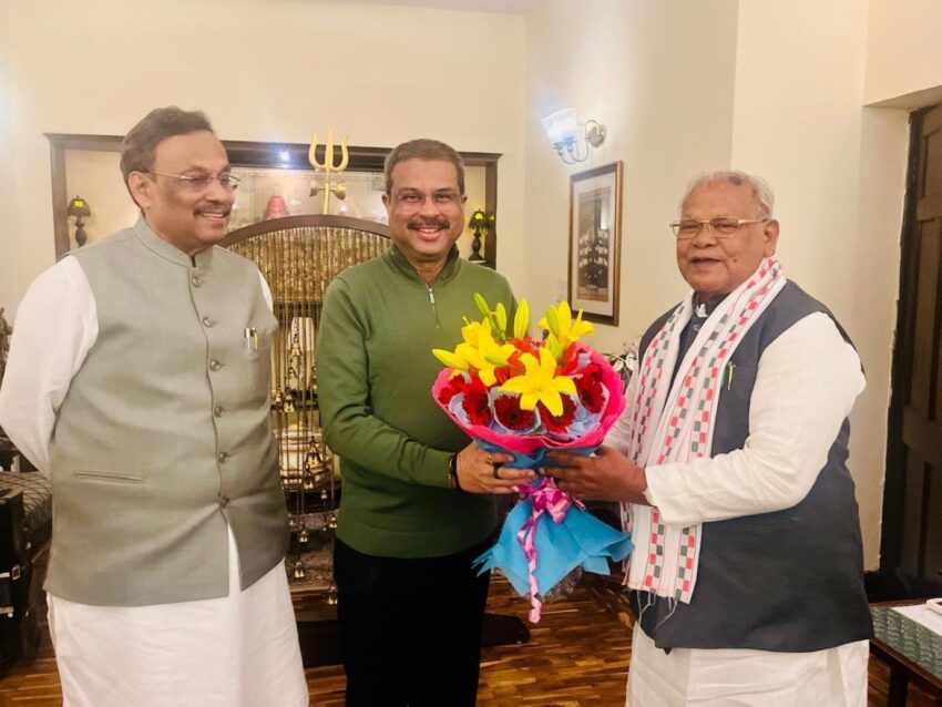 New Delhi [India], November 16 (ANI): Union Minister and HAM(S) founder Jitan Ram Manjhi on Sunday met Union Minister and BJP Bihar election in-charge Dharmendra Pradhan in Delhi, while ruling out any talks on cabinet berths, asserting that Nitish Kumar will be the face for the Chief Minister’s post.