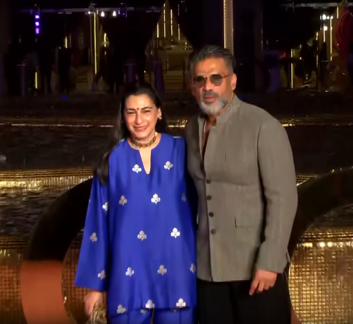 Suniel Shetty attended the NMACC celebration event with his wife, Mana Shetty. The actor looked classy in the bandh gala shervani.