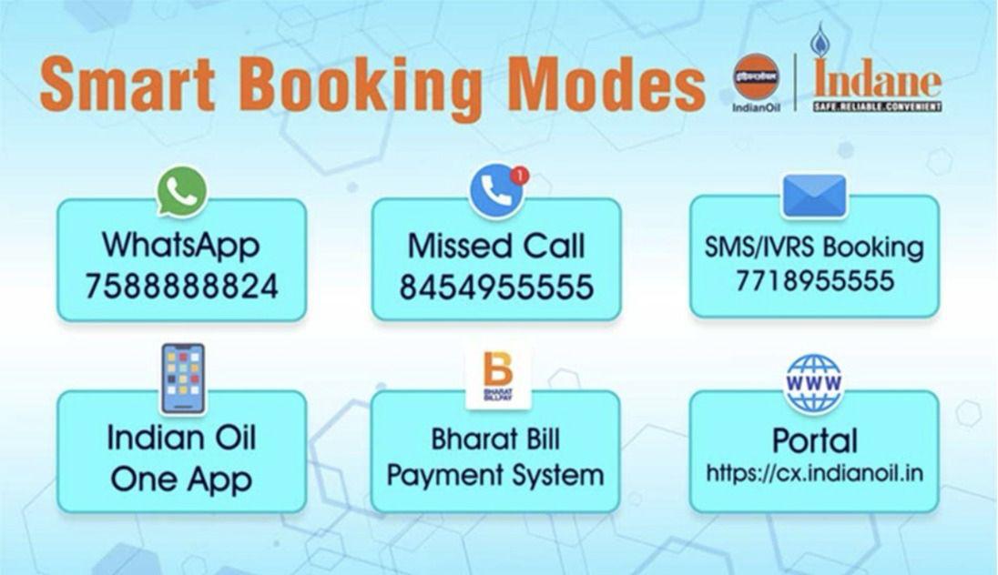 According to Indian Oil Corporation Ltd. (IOCL), LPG cylinders can be booked through WhatsApp (7588888824), Call from registered number (8454955555), SMS/IVRS (7718955555), Mobile App (IndianOil ONE), or Online Portal (https://cx.indianoil.in).