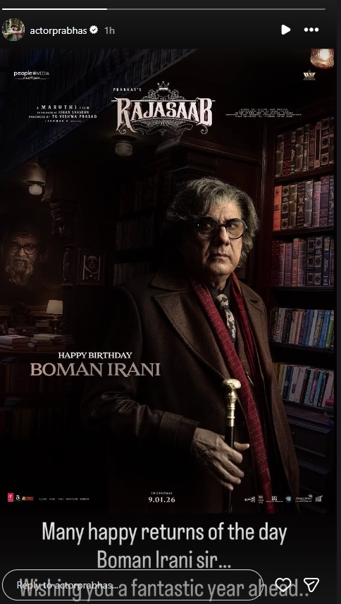 Prabhas, who plays the lead in The RajaSaab, also took to social media to share the poster and extend warm wishes to Irani on his birthday.