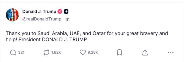 In contrast to his criticism of Western allies, the US President lauded regional powers for their role in the developing situation. In a separate social media post, he expressed his gratitude, stating, “Thank you to Saudi Arabia, UAE, and Qatar for your great bravery and help.”
