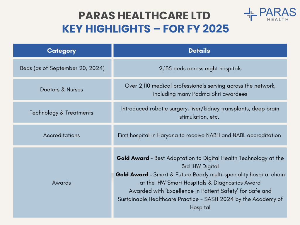 Paras Healthcare Ltd – Key Highlights – For FY 2025