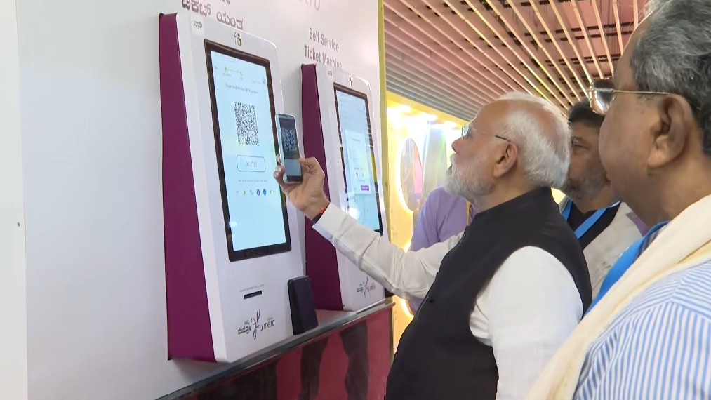 The Prime Minister was seen buying a ticket through QR code-enabled ticket vending machines at the Ragigudda metro station before flagging off the Yellow Line of the Namma Metro.