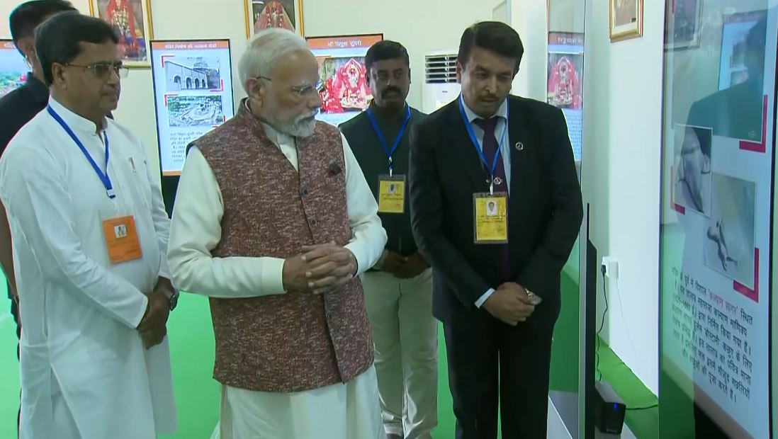 He also visited an exhibition in the temple complex. PM Modi is visiting the temple on the first day of Navratri.