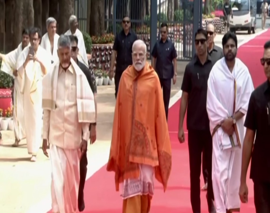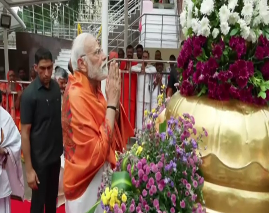 Nandyal (Andhra Pradesh) [India], October 16 (ANI): Prime Minister Narendra Modi on Thursday performed pooja and participated in Darshan at Sri Bhramaramba Mallikarjuna Swamy Varla Devasthanam, Srisailam in Nandyal district. Andhra Pradesh Chief Minister N Chandrababu Naidu was also present with him.