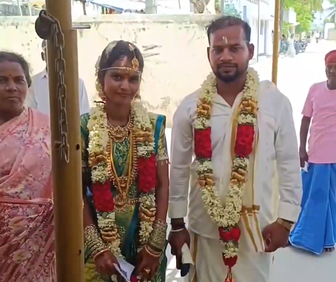 In another similar instance, a newly-married couple visited a polling booth at KAP Viswanatham Higher Secondary School in the Tiruchirappalli West constituency and cast their votes, fulfilling their democratic responsibility.