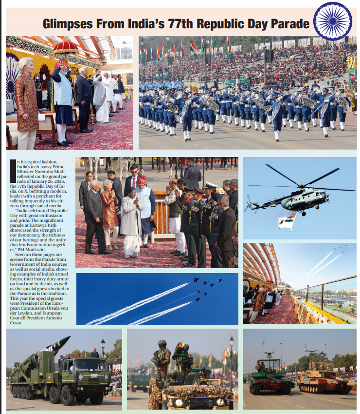 Pomp and pageantry at India’s 77th Republic Day Parade -1 Posted on January 27, 2026January 28, 2026 by By a Staff Writer Next Story Previous StoryIndia’s 77th Republic Day Parade – In PicturesRelated posts:Trump says US, India still negotiating after 25% US tariff threatIndia Rejects Western Criticism Over Russian Oil Imports, Cites Hypocrisy in EU and US Trade PracticesKremlin slams Trump tariff pressure on India over Russian oil as illegalEurope and India announce blockbuster trade deal