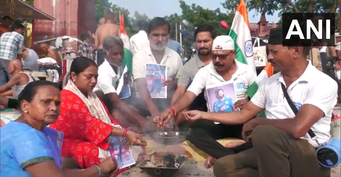 A Team India supporter, Sachin Mishra, said that people at Dashashwamedh Ghat in Prayagraj performed Ganga Aarti and hawan, praying for India’s big win against.
