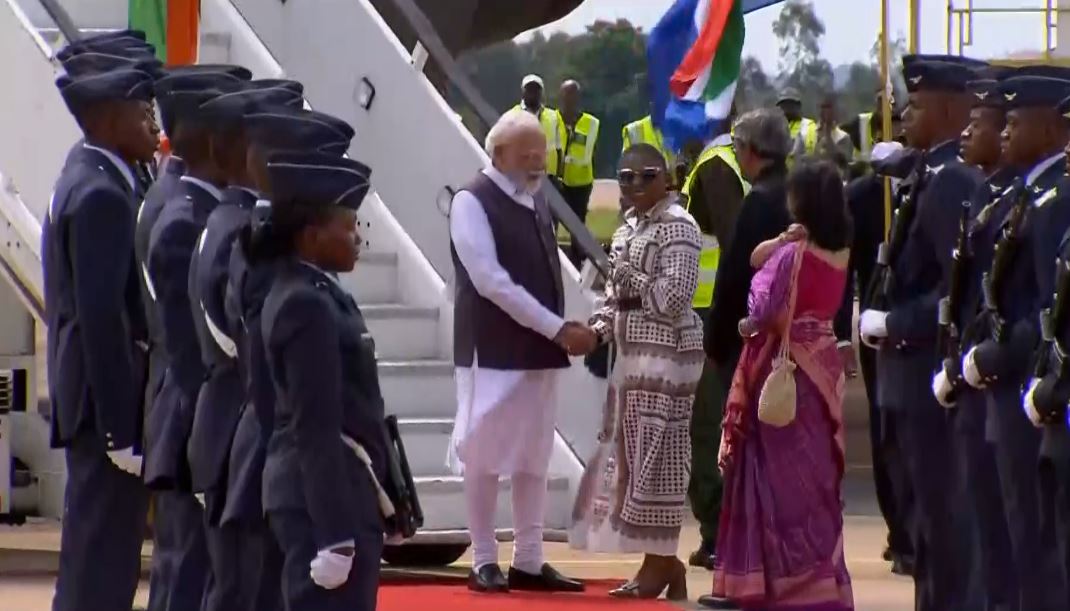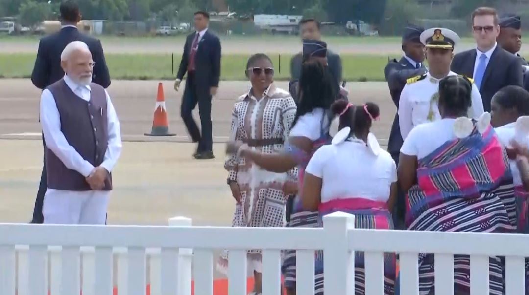 Johannesburg [South Africa], November 21 (ANI): Prime Minister Narendra Modi landed in Johannesburg on Friday to attend the G20 Leaders’ Summit. He was accorded a ceremonial welcome upon arrival.