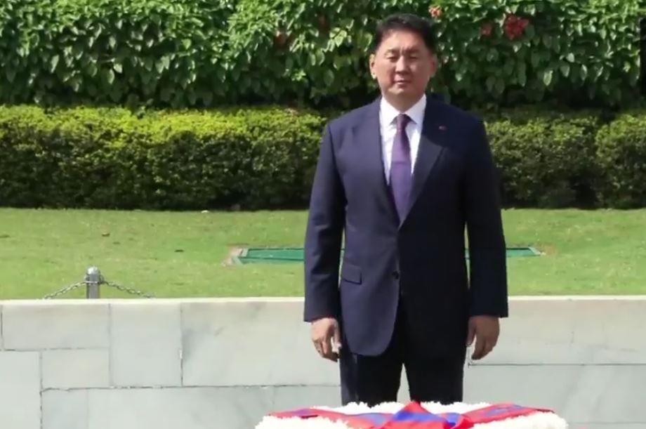 Earlier today, President Ukhnaa laid a wreath and paid tributes at the Rajghat along with several members of the Mongolian delegation. He signed the guest book and was presented with a bust and a book of Mahatma Gandhi.